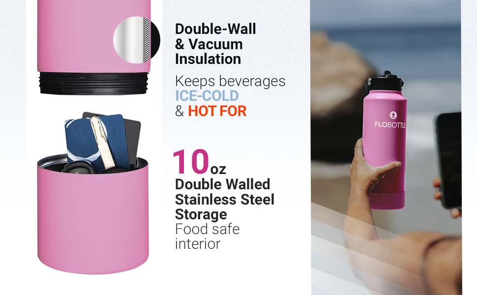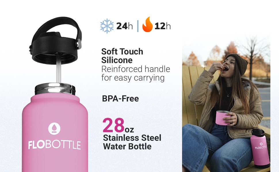 Designed with a corrosion resistant powder, the long-lasting design of FLOBOTTLE is emphasized with a durable base and easy cleaning process. Each bottle features a double-walled vacuum seal that keeps your beverage both warm and cold.