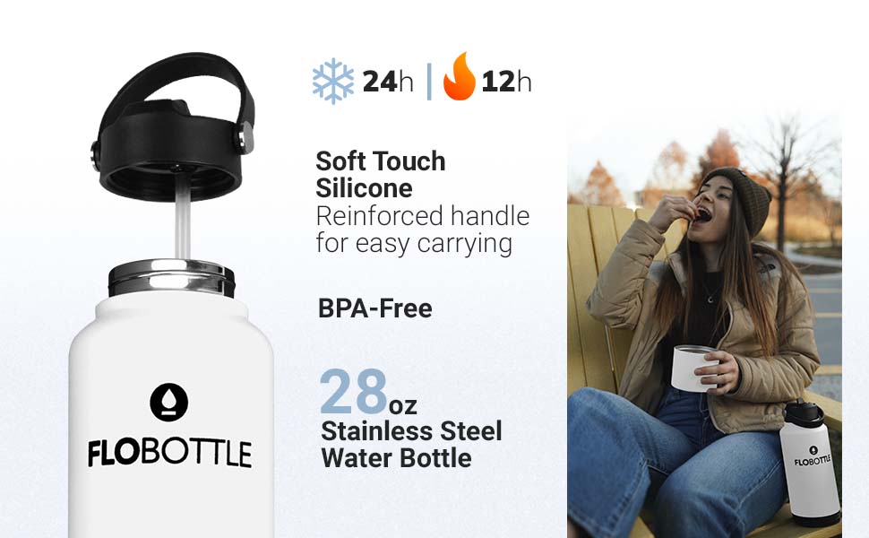Designed with a corrosion-resistant powder, the long-lasting design of FLOBOTTLE is emphasized with a durable base and easy cleaning process. Each bottle features a double-walled vacuum seal that keeps your beverage both warm and cold.