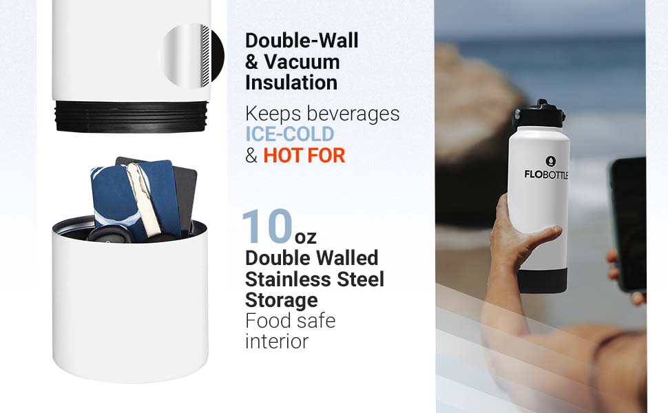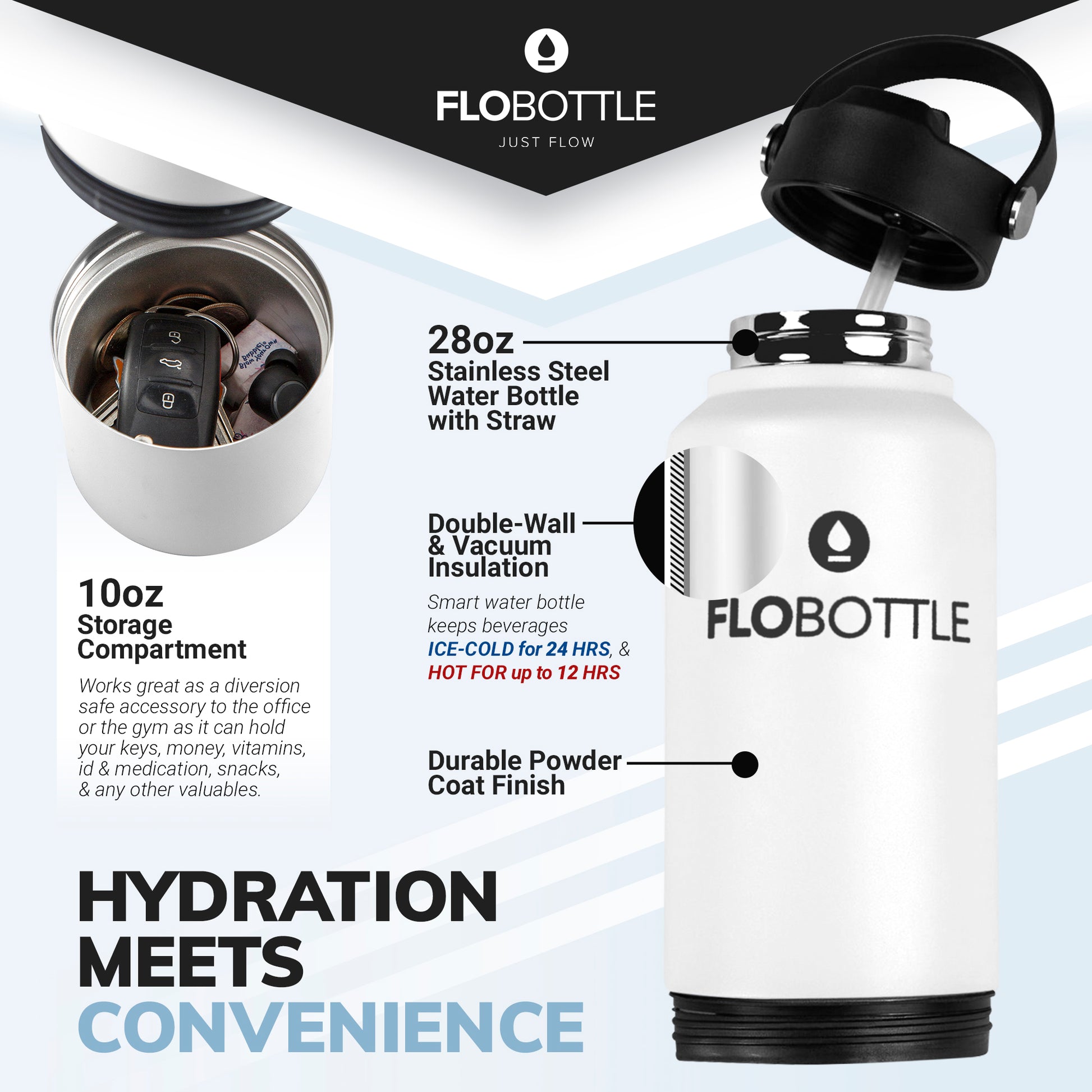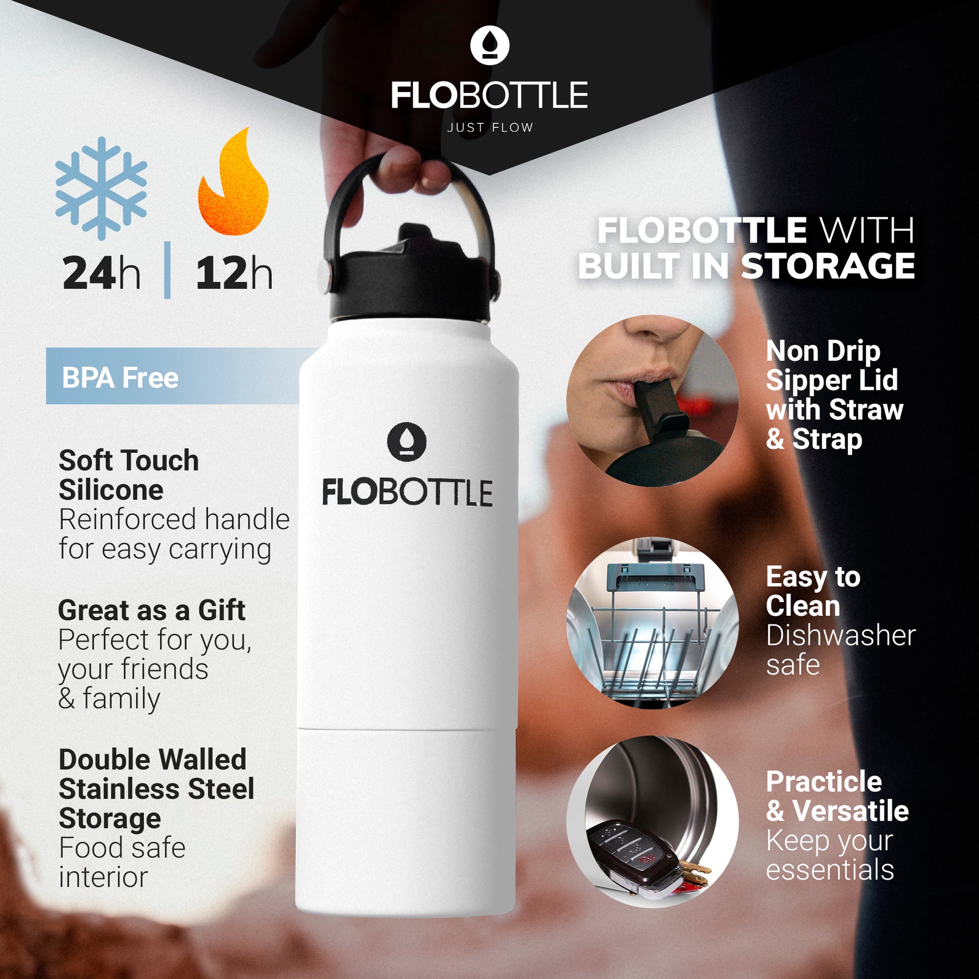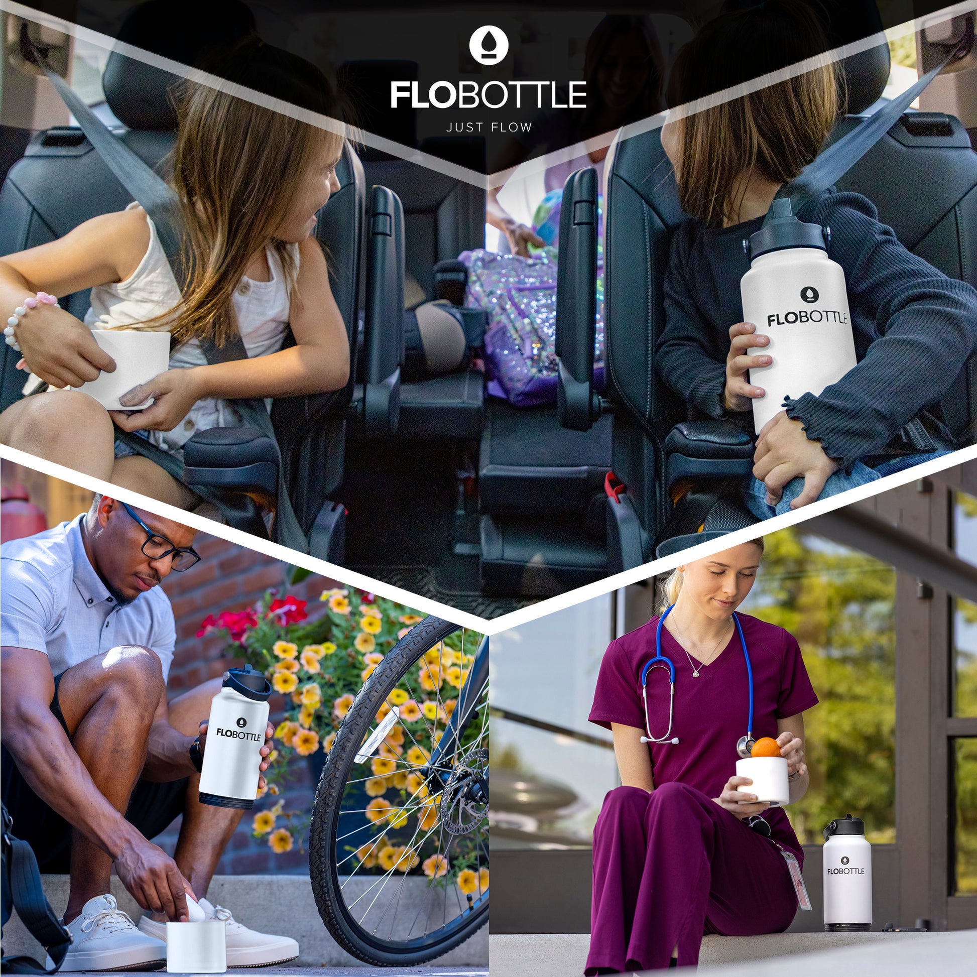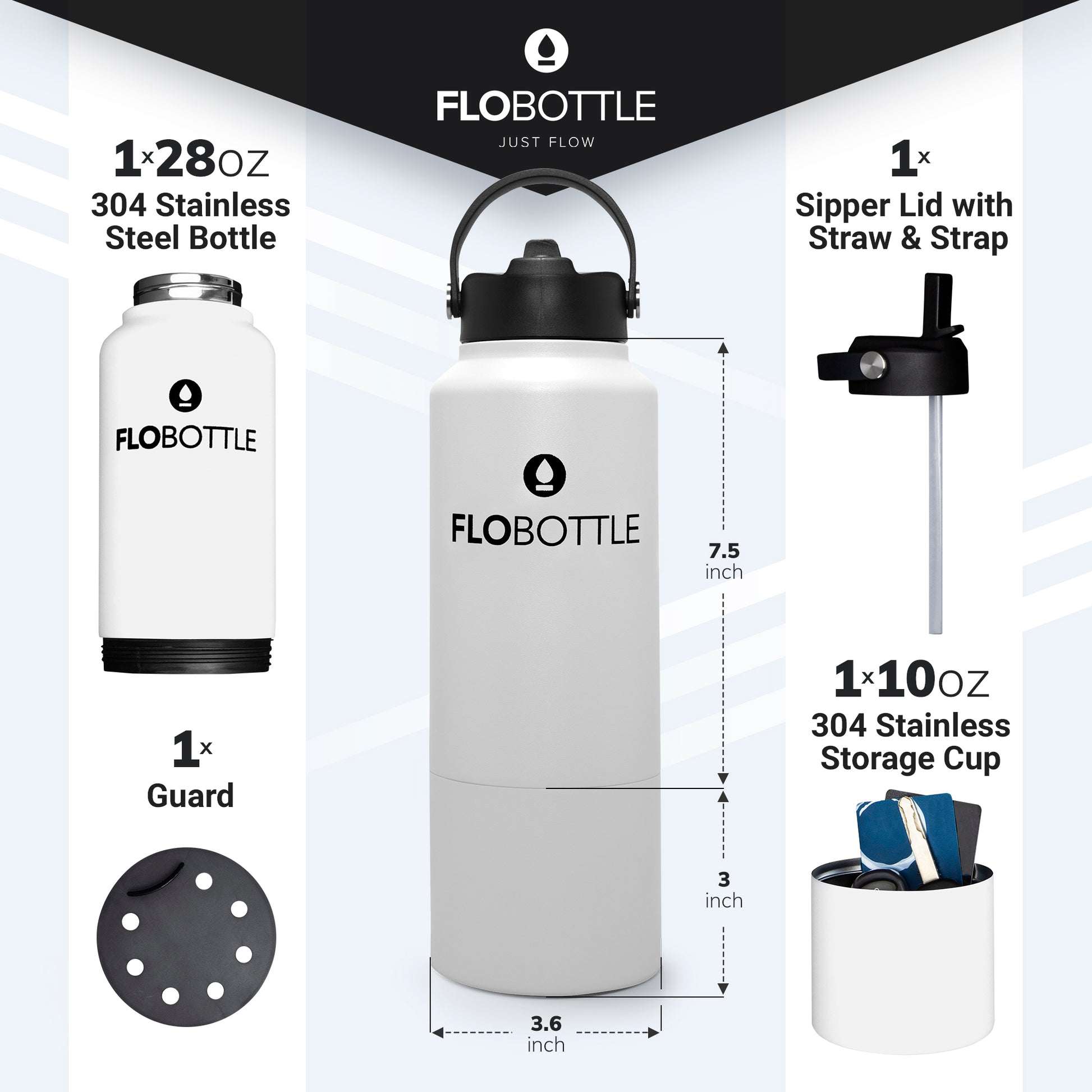 Designed with a corrosion resistant powder, the long-lasting design of FLOBOTTLE is emphasized with a durable base and easy cleaning process. Each bottle features a double-walled vacuum seal that keeps your beverage both warm and cold.